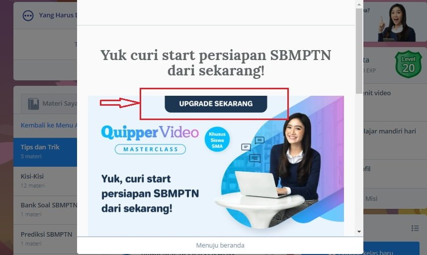 Jika kau tertarik untuk upgrade akun Quipper kau supaya dapat jalan masuk fitur masterclass, berikut caranya.